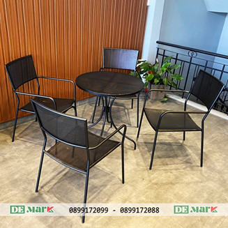 1. Nếu là không gian ngoài trời, nhiều nắng, gió, đôi khi sẽ có những cơn mưa bất chợt thì nên chọn bàn ghế ghế chất liệu kim loại (sắt, nhôm..) với nhiều thiết kế như đơn giản mang hơi hướng hiện đại hoặc cầu kỳ mang tính cổ điển.