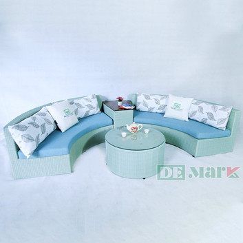 2. Nếu là không gian trong nhà thì sự lựa chọn sẽ đa dạng hơn, bạn có thể sử dụng bàn ghế hoặc sopha chất liệu giả mây hoặc dây dù.