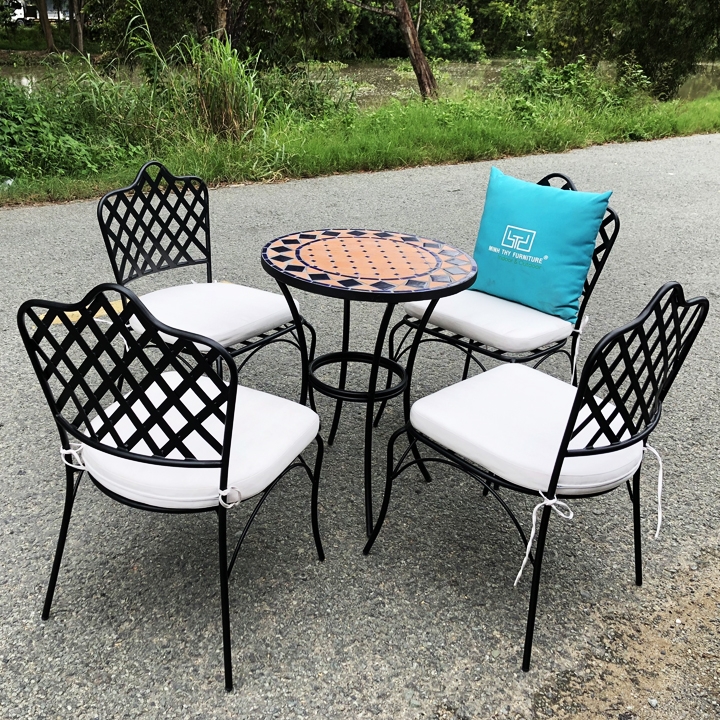 Bộ sản phẩm gồm: 4 ghế có nệm + 1 bàn đá mosaic