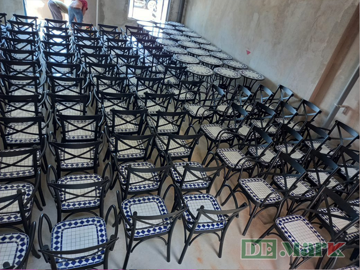 Bàn ghế sắt ngoài trời với mặt đá Mosaic