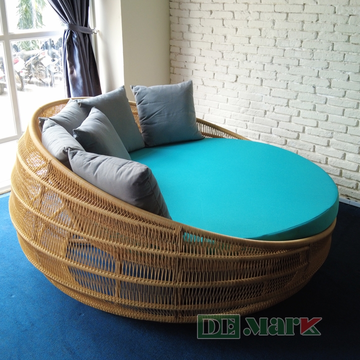 Cấu tạo: Khung Sắt/Nhôm/Inox, sơn tĩnh điện, sợi nhựa giả mây, nệm mousse D25, vải VN