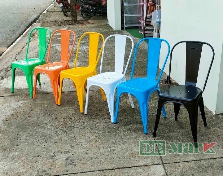 Ghế sắt cafe Tolix tựa lưng nhiều màu phong cách industrial cho quán cafe