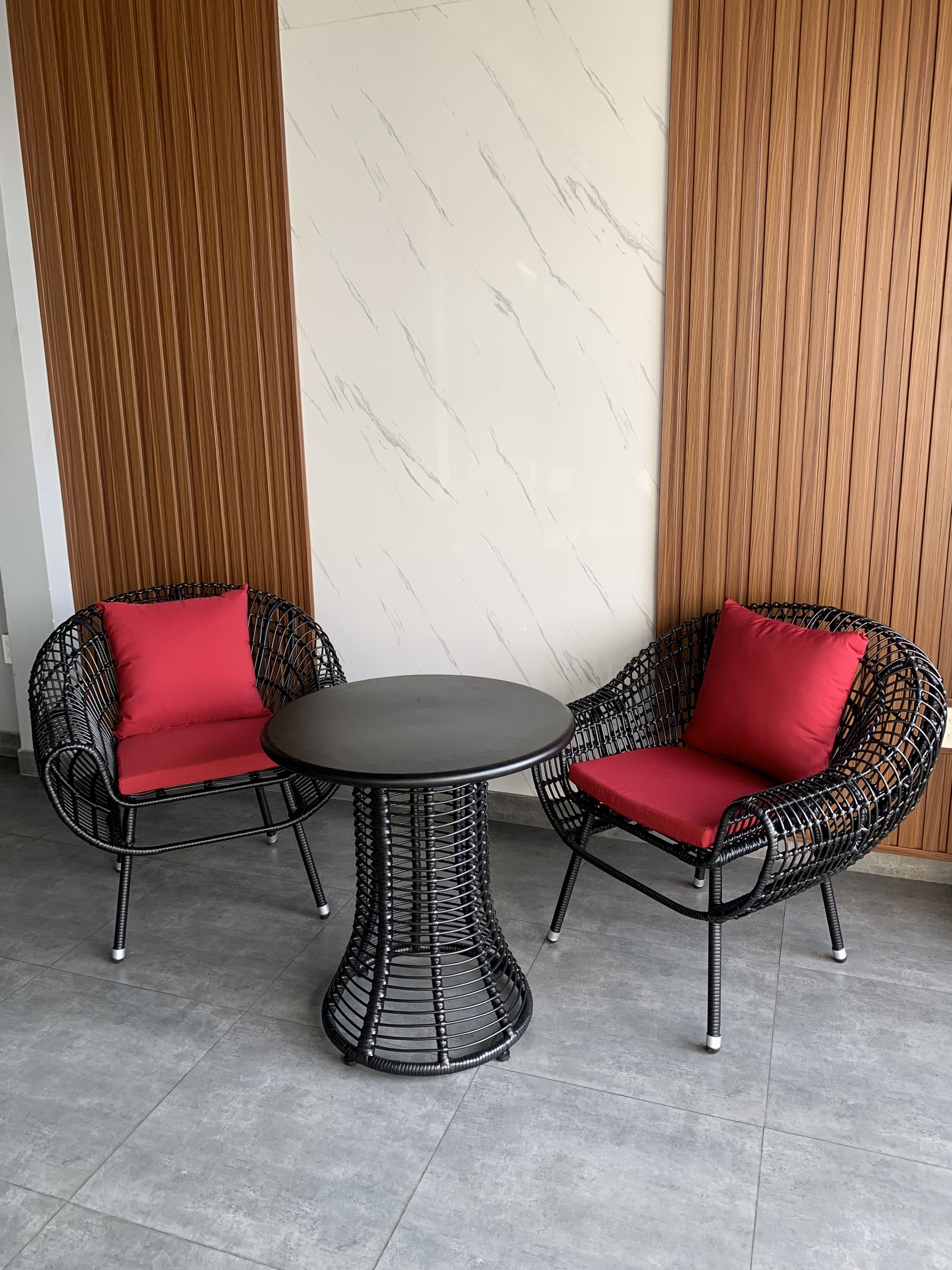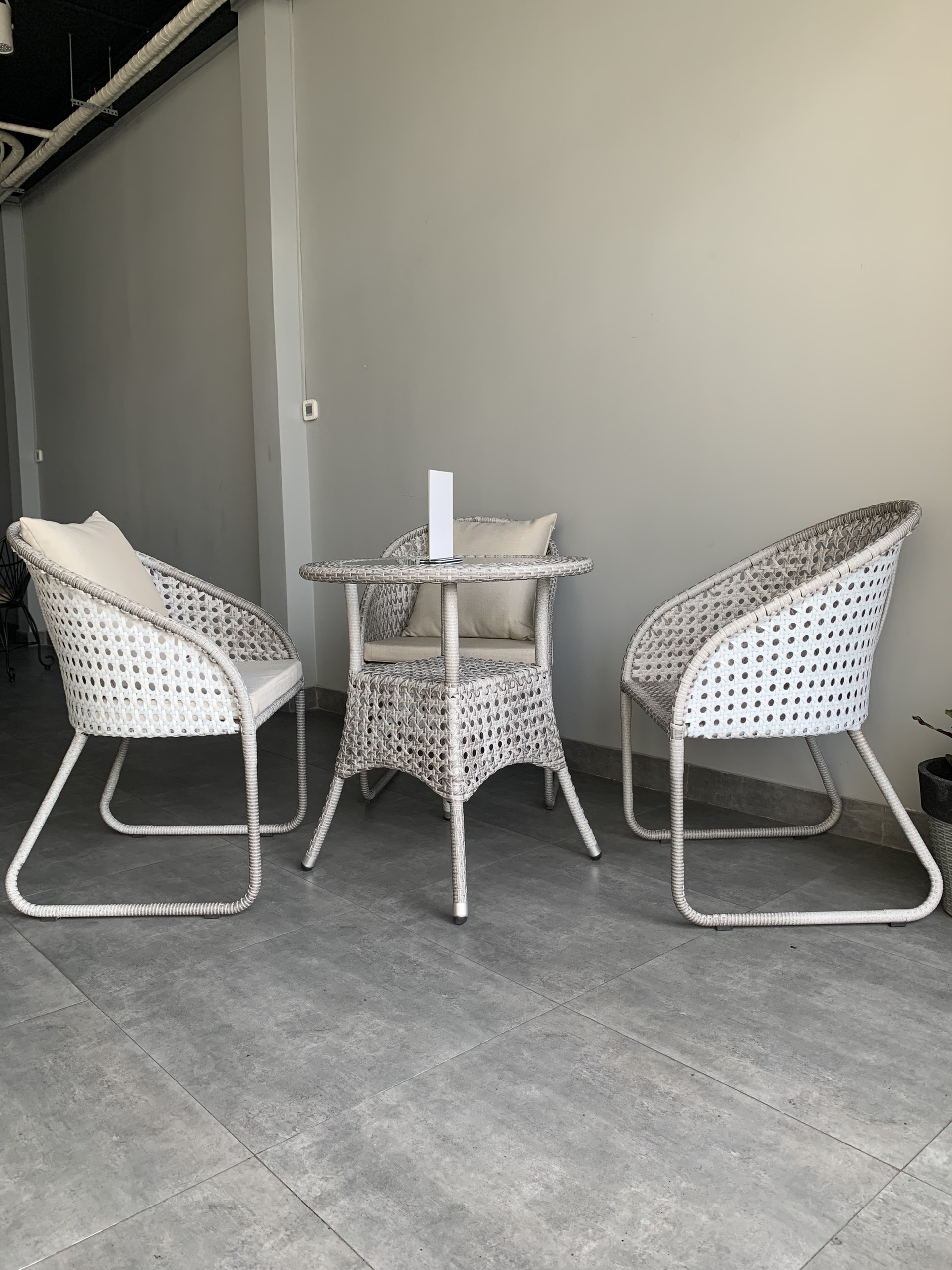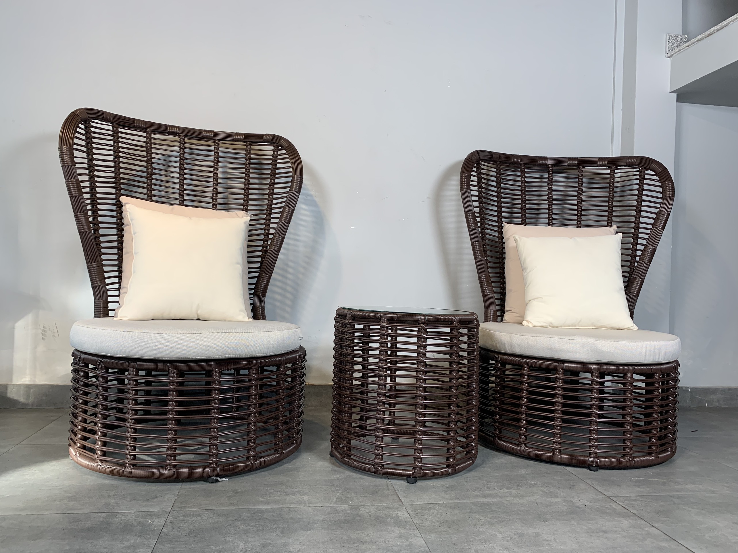 Mẫu ghế thích hợp cho ban công lớn hoặc phòng thư giẫn, đi kèm bộ 2 hoặc 4 ghế