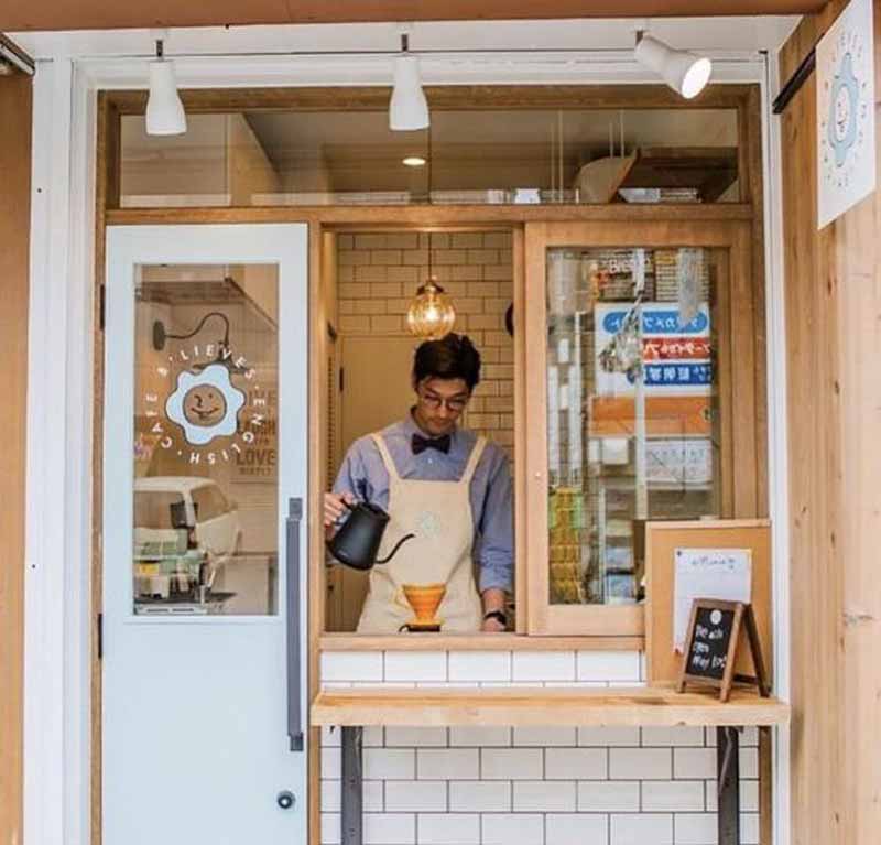 Địa điểm mở quán cafe này thích hợp được đặt ở nơi vắng vẻ và yên bình. Thiết kế quán cafe nhỏ này có thể đặt một vài bộ bàn ghế bên ngoài mặt tiền của quán. Giúp cho nhóm khách hàng có thể ngồi tán gẫu một cách thoải mái. Tuy nhiên, hãy chắc rằng bàn ghế luôn nằm trong khuôn viên của quán. Bởi nếu bày biện bàn ghế ngoài vỉa hè, bạn cần phải xin phép địa phương hoặc sẽ bị phạt khi chiếm đóng lề đường.
