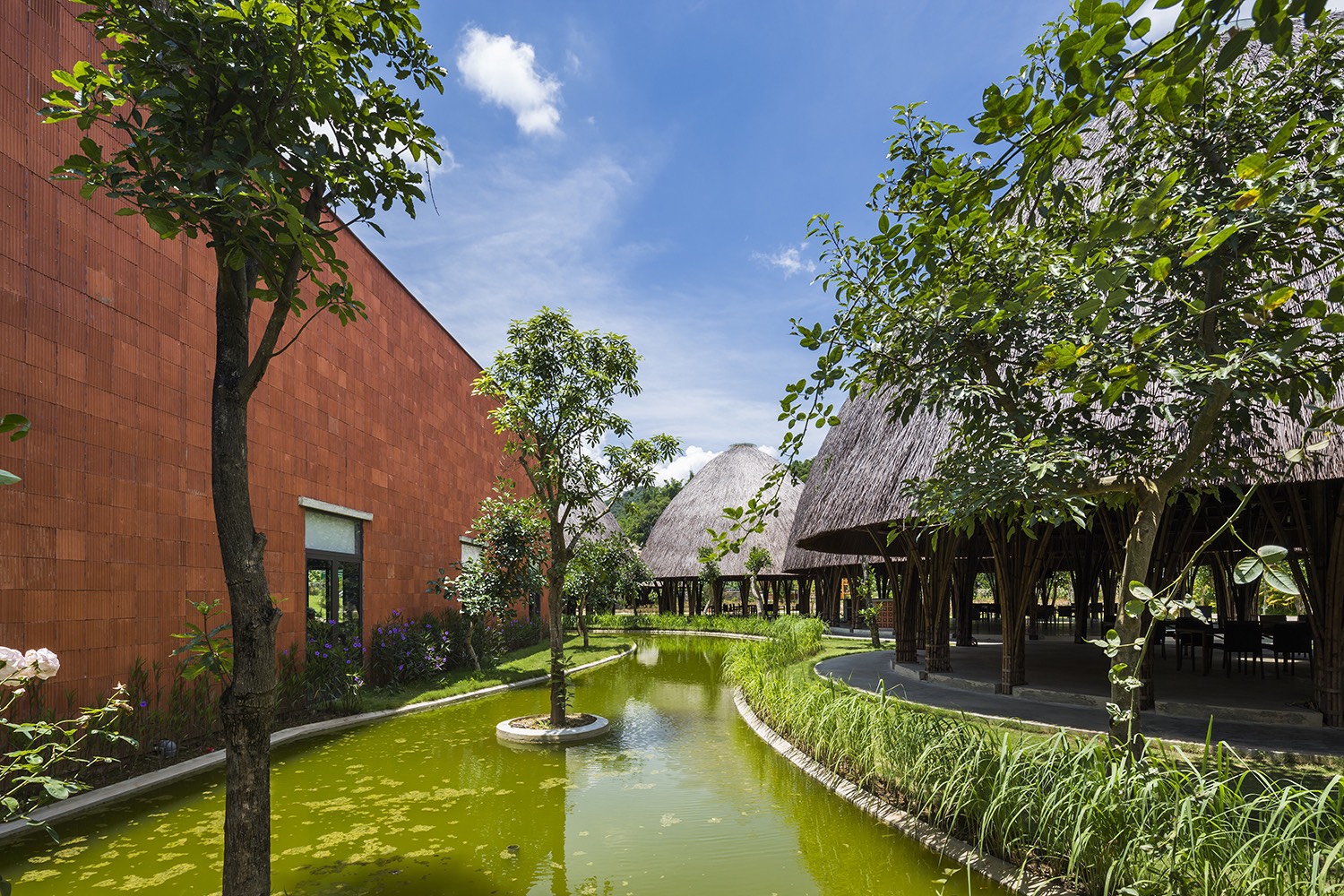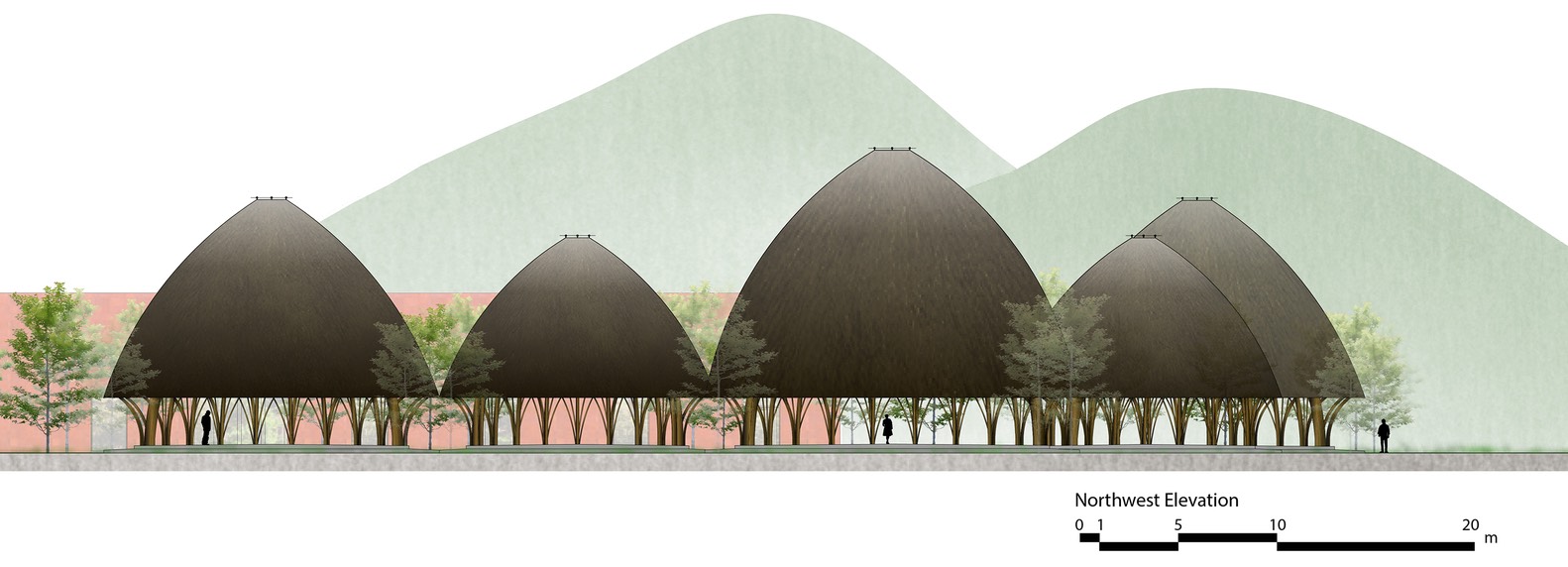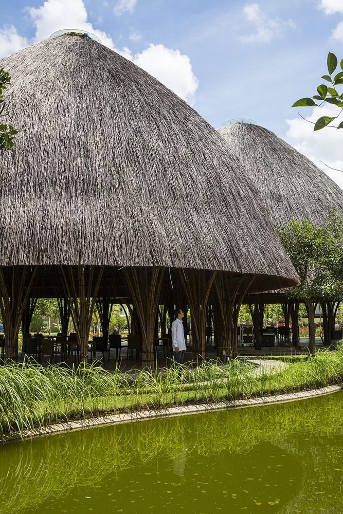 Cấu trúc tre nguyên khối được lấy cảm hứng từ giỏ tre truyền thống. Các mái vòm có cấu trúc hai lớp với một mái nhà làm bằng tranh. Một giếng trời trên đỉnh của mỗi mái vòm cho phép ánh sáng và thông gió tự nhiên.