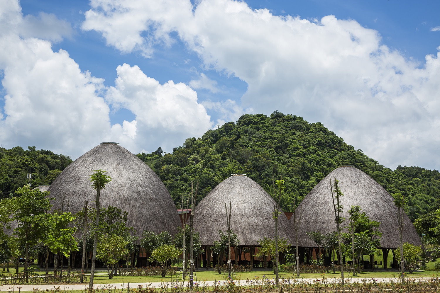 Những mái vòm này được thiết kế trong một cảnh quan rừng cây với bầu không khí yên bình. Cây sẽ vươn lên trên vòm và sẽ tạo ra một môi trường đẹp, râm mát trong vài năm tới. Hoà vào đó là âm thanh thiên nhiên từ thác nước và con suối nhỏ chảy róc rách giữa hội trường và các nhà vòm. Một vườn hồng nhỏ kết nối mọi không gian với nhau, được thiết kế như một điểm nhấn dành cho quan khách từ lối dẫn vào hội trường.