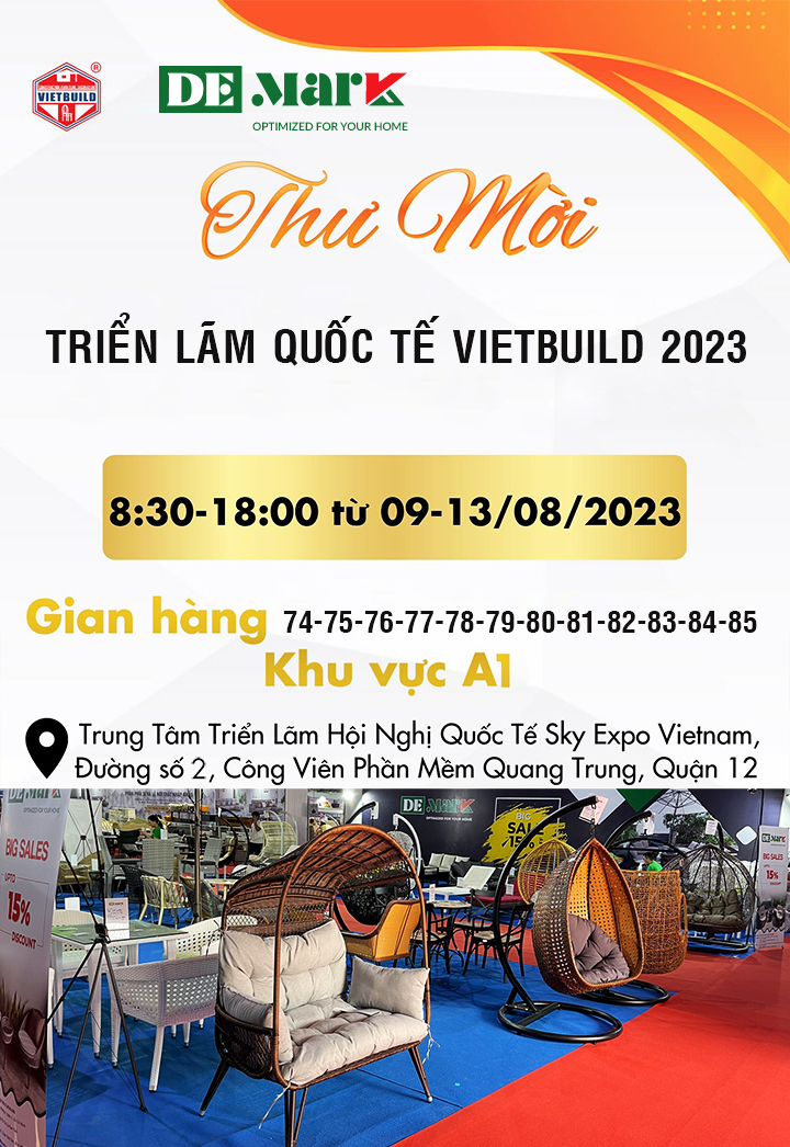 ✨ Hân hoan chào đón tới sự kiện Vietbuild 2023, nơi tập trung hàng nghìn cơ hội hợp tác và đầu tư trong lĩnh vực Bất động sản, Xây dựng, Trang trí nội thất và Vật liệu xây dựng. Nội Thất DeMark trân trọng mời Quý vị đến tham quan gian hàng DeMark tại Vietbuild 2023.